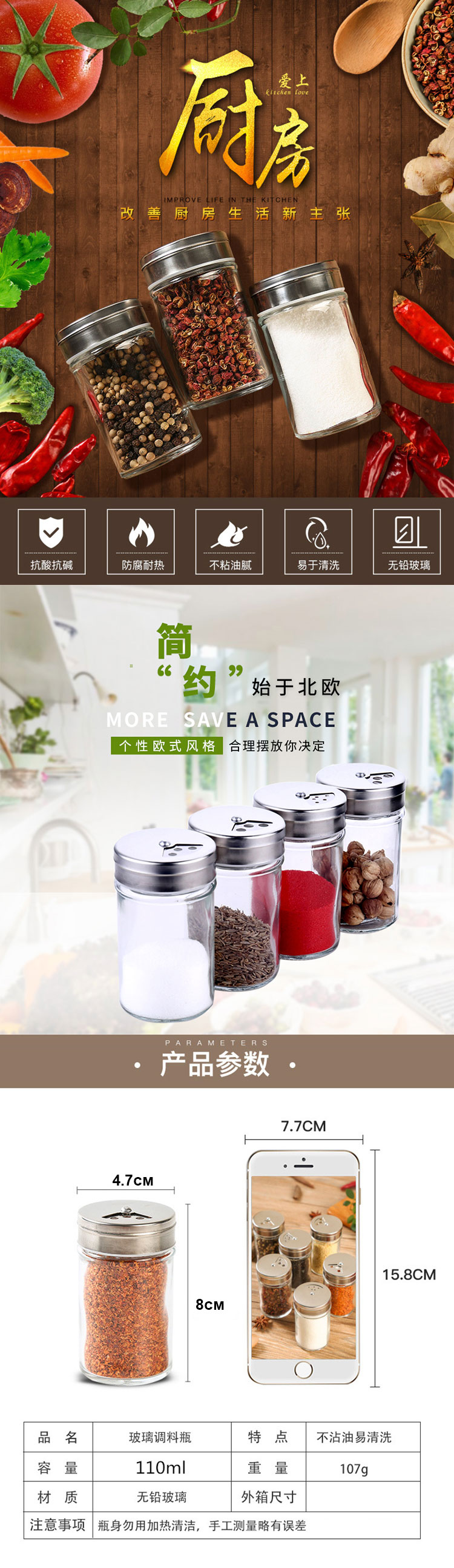巴錫三は無鉛ガラスの調味料瓶を入れて調味料箱の厨房のあぶり焼き調味料の瓶のセットの調味料の箱のステルレス鋼の304蓋をととのえます。