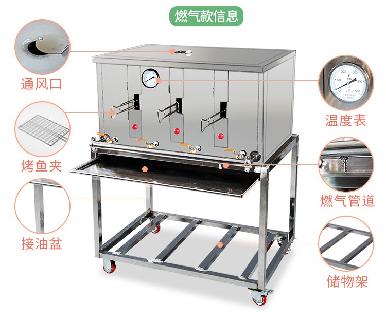 焼魚炉商用ガス禁煙ガス液化ガス焼魚炉スティン鋼焼魚機焼魚箱炭火焼青