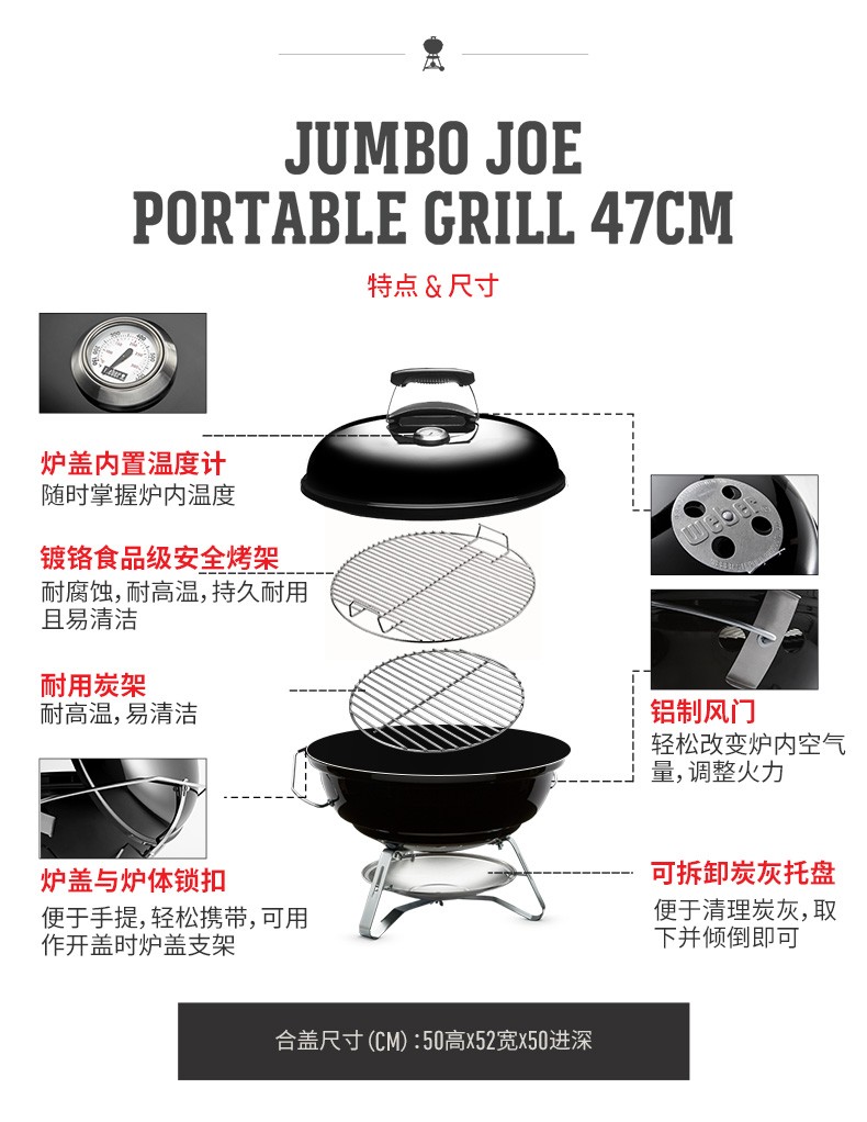 無煙焼き炉携帯型屋外家庭用車用焼魚炉威焙weber米国輸入炭式とろ火トースター豪華版炭オーブン37 CM