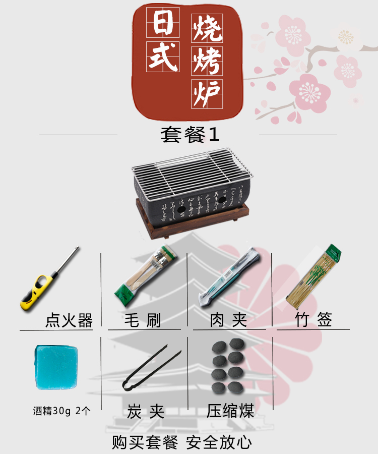 日本炭ミニグリル日本文字シングル炭火焼室内焼肉家庭用炭火オーブン小型大サイズオーブン+ネット+オーブン+アルコール