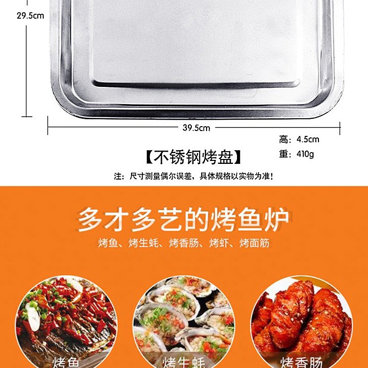 業務用に厚い各種葛焼き炉スティンレス鋼の焼き魚炉炭商用炭焼きアルコール炉棚海鮮大カレー皿家庭用長方形焼き皿諸葛45 x 35(オーブン+オーブン+プレート+シャシー)
