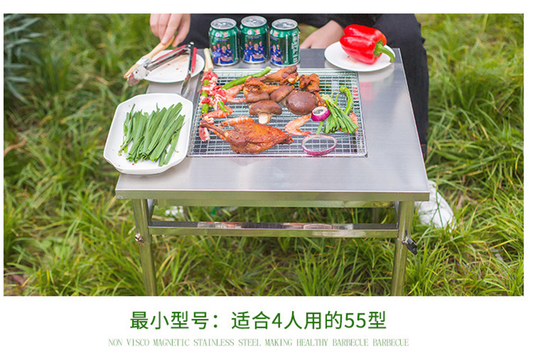 業務用の屋台バーベキューテーブル携帯木炭バーベキューグリルセルフストーブ屋外携帯庭園野炊台家庭用スティンスチール折りたたみ式バーベキューテーブル厚さ75*75