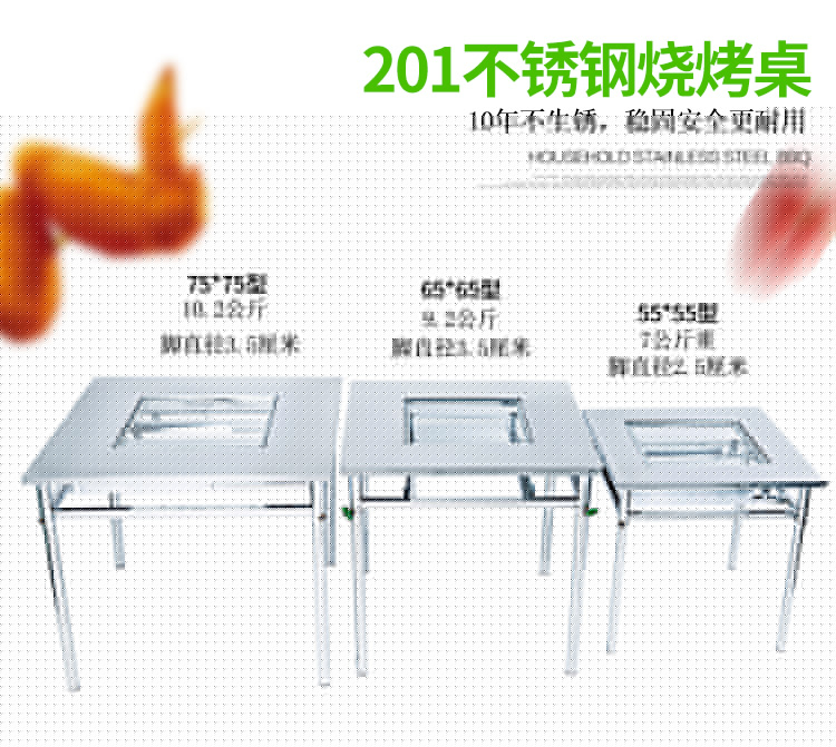 特司羅ビュッフェバーベキューテーブル多機能屋外炭焼きグリルグリルテーブルビジネススティンレススチール無煙帯グリル家庭用大規模焼きテーブル農家楽焼羊脚テーブル厚い75 X 75