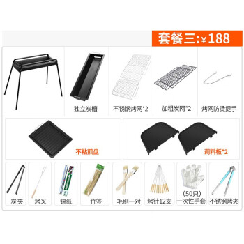 原始人バーベキューラック屋外バーベキュー炉家庭用炭焼き炉5人以上のバーベキュー道具セット3:セット2+ソースボード*2